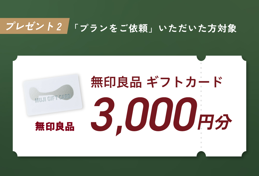 🏡 プランのご依頼でさらに無印良品ギフトカード3000円分をプレゼント🎀