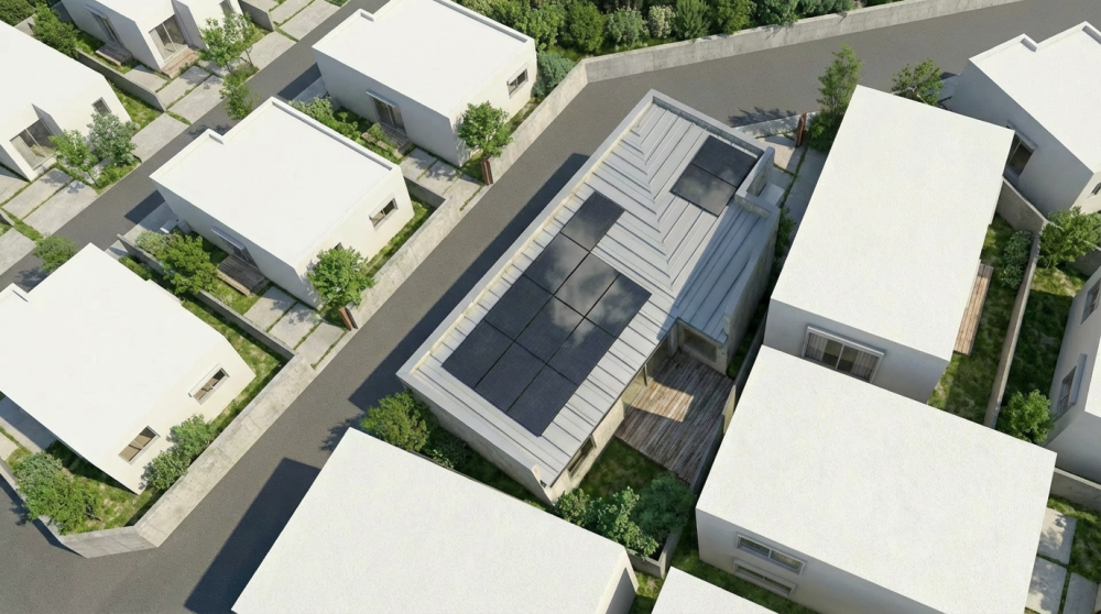車通りや人通りの多い北側道路に対してはプライバシーを守る外観を作り、二人だけの中庭を南面へ設け、内へ広がる空間をご提案しました。