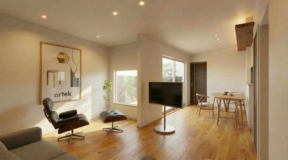 リビング・ダイニング・寝室・ヌック・中庭と住空間に居場所を多く設ける事で、季節や時間に応じて好きな場所で時間を過ごすことができます。